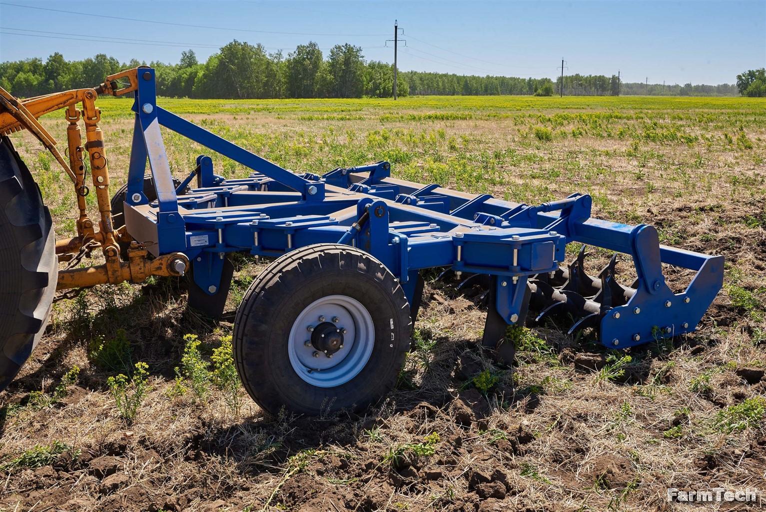 - Регулировка глубины обработки путем изменения высоты двух опорных колес тягами Тал-РЭП значительно сокращает время настройки орудия.