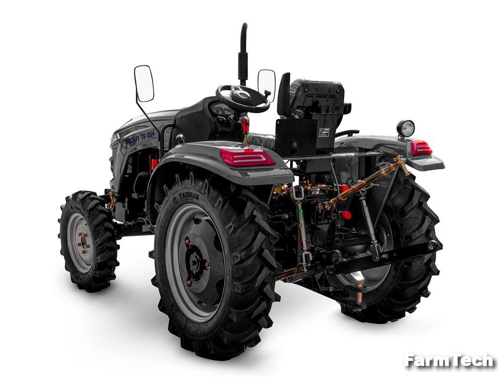 Модель 2024 года: трактор SCOUT TE-254 — компактный, полноприводный, на мощном шасси «TE» с массой 1650 кг, реверсивной КПП и внушительными 7 kN тягового усилия.