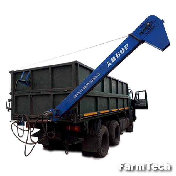 Загрузчик зерна представляет собой шнек в цилиндрическом корпусе, находящийся на дне кузова, вдоль левого борта автомобиля. Посредствам гидромотора шнек передает всю массу зерна или удобрений за пределы кузова через задний борт, где её подхватывает скребковый конвейер, вращающийся так же от этого гидромотора.